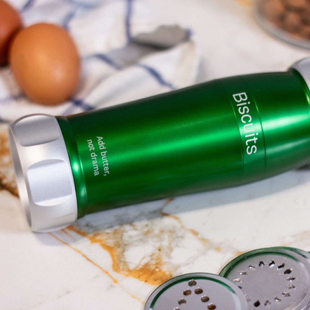 Mit Dispenser ist das Bestreuen von frischer Pasta mit Mehl oder Hartweizengrieß, von Gerichten mit Gewürzen, von Kuchen und Keksen mit Puderzucker oder Kaka...