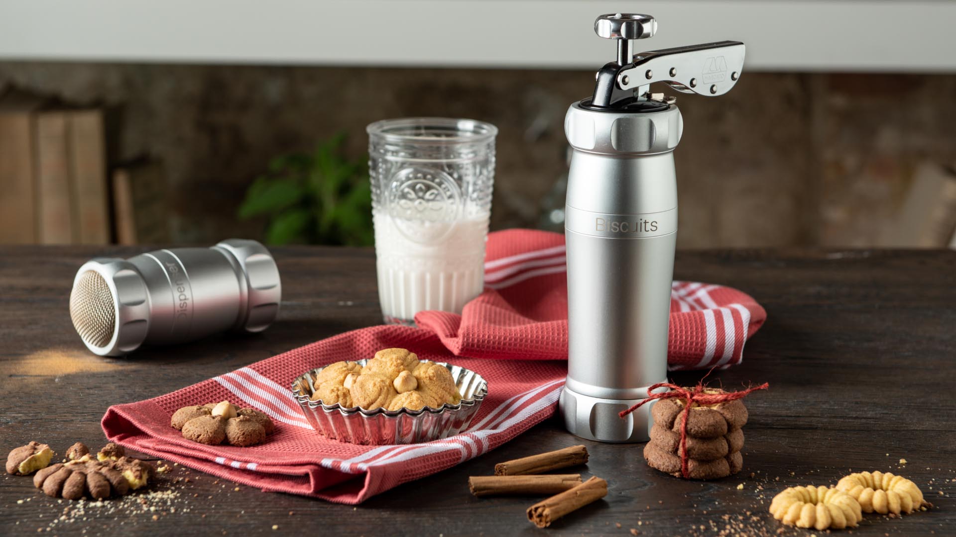 Mit Dispenser ist das Bestreuen von frischer Pasta mit Mehl oder Hartweizengrieß, von Gerichten mit Gewürzen, von Kuchen und Keksen mit Puderzucker oder Kaka...