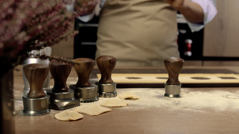 Corzetti is a typical pasta shape from the regions of Liguria and Tuscany. Originating during the Renaissance era, it was formerly used by noble families to print their heraldic coat of arms on pasta, to emphasise the importance of the lineage.The Corzetti Kit includes two moulds made of solid wood; they allow the home-made pasta to be cut and imprinted with the spiral and lily mark.